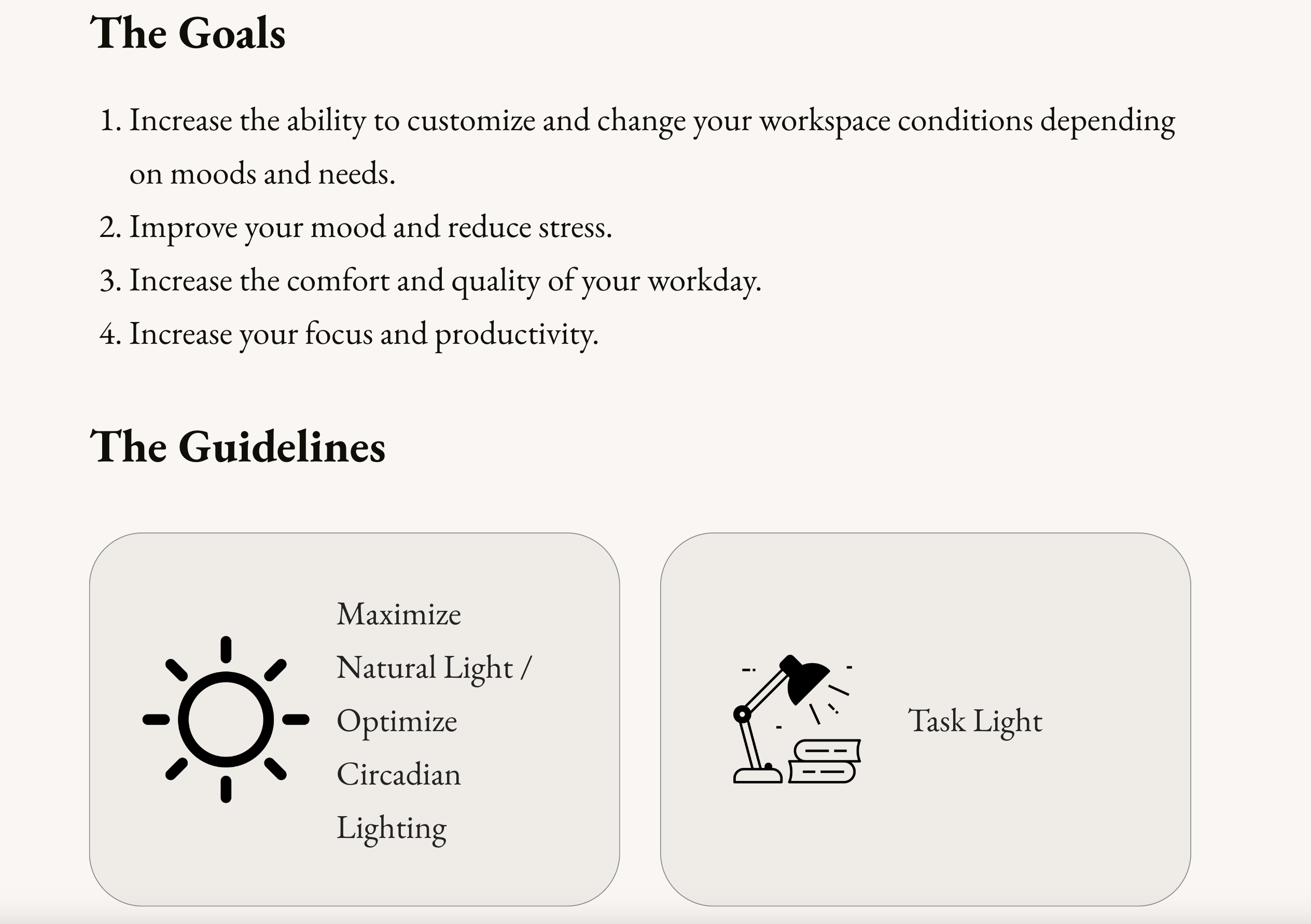 Each page, or room, of guidelines will have anywhere from 7-10 different design strategies. You can find suitable products to implement these guidelines in The Library.