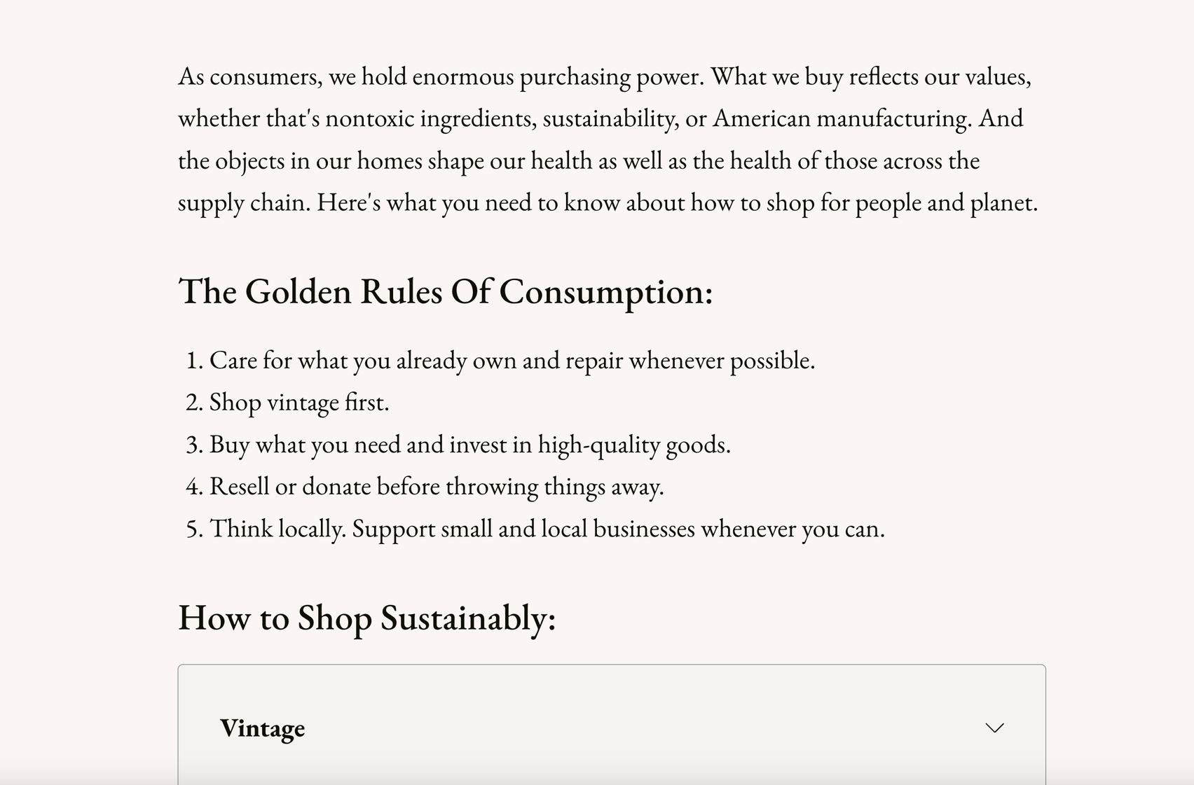- The Writing: free articles about sustainable living, ethical consumption, and healthy interior design.